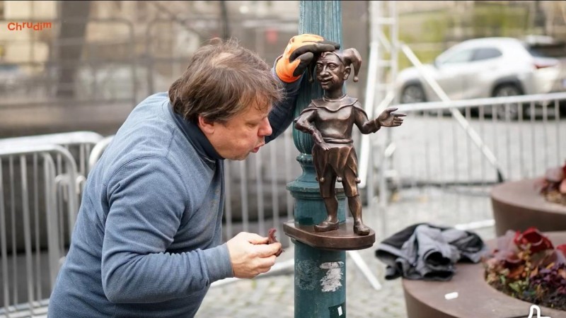 S touto plastikou pokračuje městský projekt umisťování soch loutek do veřejného prostoru. Autorem je sochař Marek Rejent.